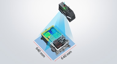 使用光切法的雷射位移計(jì)(2D、3D)。以線型雷射光照射目標(biāo)物表面,再以CMOS接收其反射光的變化,以非接觸形式量測(cè)高度、高低差、寬度、平面度等輪廓(截面形狀)。對(duì)連續(xù)取得之輪廓資料進(jìn)行影像處理,取得3D形狀,實(shí)現(xiàn)高精度量測(cè)與全檢。而且,KEYENCE的全新自動(dòng)掃描3D感測(cè)器能夠在短短零點(diǎn)幾秒內(nèi)對(duì)靜止目標(biāo)物進(jìn)行高精度的3D外觀檢查,使其能在更多情況下進(jìn)行檢查。