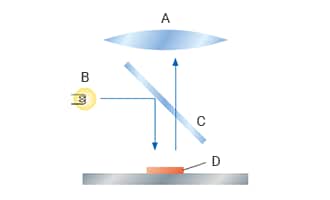 A:鏡頭 B:光源 C:半反射鏡 D:目標(biāo)物