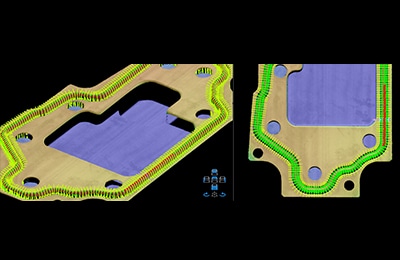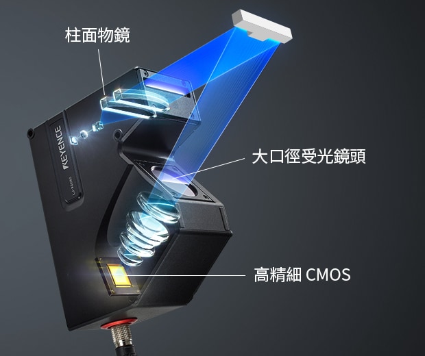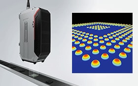 使用光切法的雷射位移計(jì)(2D、3D)。以線型雷射光照射目標(biāo)物表面,再以CMOS接收其反射光的變化,以非接觸形式量測(cè)高度、高低差、寬度、平面度等輪廓(截面形狀)。對(duì)連續(xù)取得之輪廓資料進(jìn)行影像處理,取得3D形狀,實(shí)現(xiàn)高精度量測(cè)與全檢。而且,KEYENCE的全新自動(dòng)掃描3D感測(cè)器能夠在短短零點(diǎn)幾秒內(nèi)對(duì)靜止目標(biāo)物進(jìn)行高精度的3D外觀檢查,使其能在更多情況下進(jìn)行檢查。