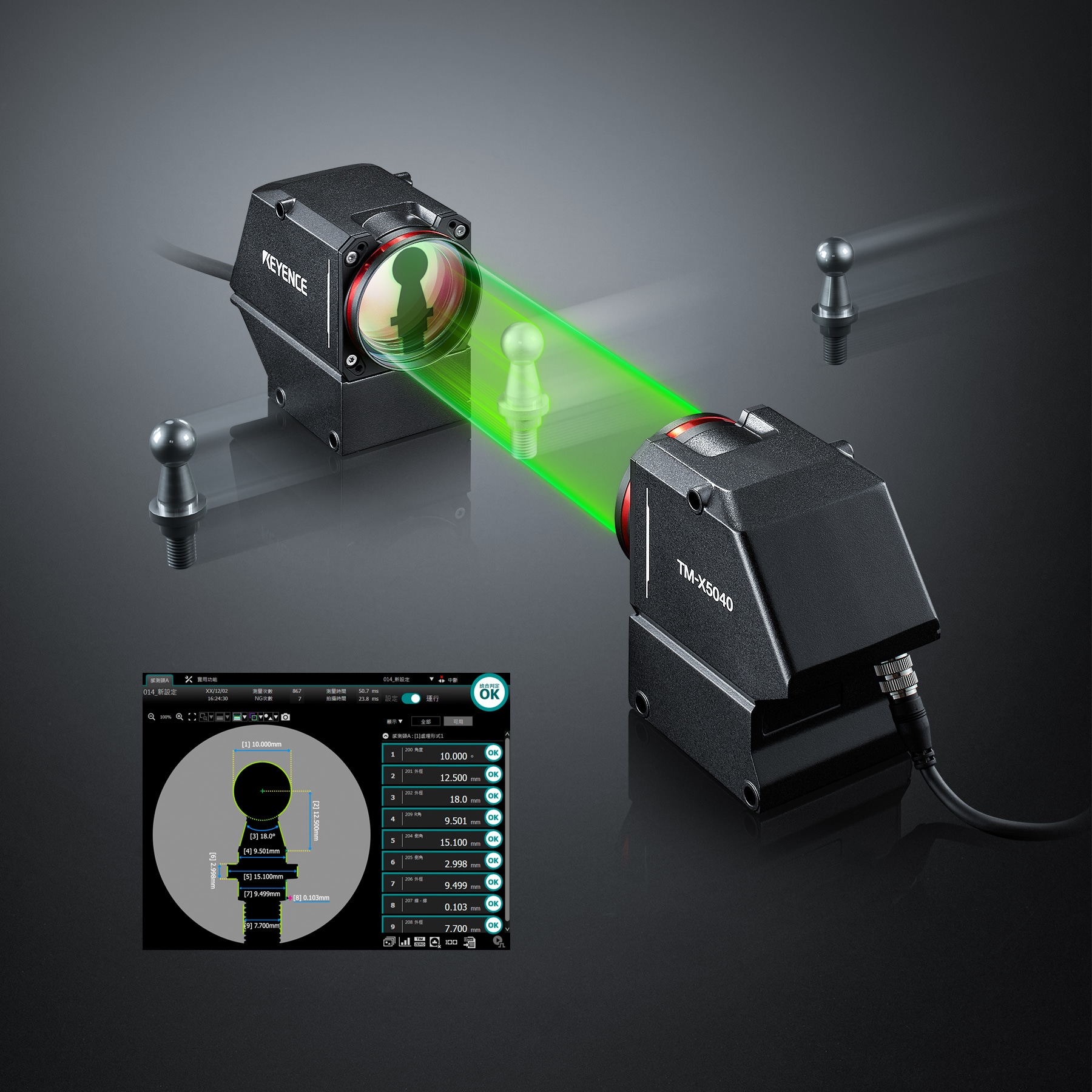TM-X5000 系列透過(guò)捕捉目標(biāo)外形輪廓,能快速且精確地進(jìn)行量測(cè)。其雙遠(yuǎn)心光學(xué)系統(tǒng)可在大景深範(fàn)圍內(nèi)提供高解析影像,搭配低畸變鏡頭與專用演算法,可於整個(gè)視野內(nèi)進(jìn)行高精度量測(cè),無(wú)需精準(zhǔn)定位、額外光源或現(xiàn)場(chǎng)校正。系統(tǒng)操作簡(jiǎn)易,僅需三步驟即可完成設(shè)定,並內(nèi)建超過(guò) 100 種量測(cè)與檢測(cè)工具,包括 GD&T、公差比對(duì)與缺陷距離檢測(cè),適合多種線上量測(cè)應(yīng)用。