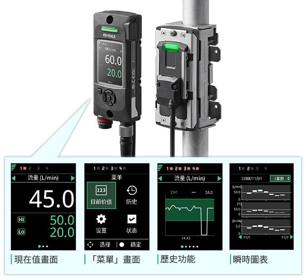 FD-EP 系列在小型機體內(nèi)內(nèi)建流量感測器與壓力感測器,可輕鬆診斷空壓元件的狀態(tài)。搭載專用應用模式,可輕鬆實現(xiàn)氣缸、吸附搬運、在席及吹氣的預防維護。即時捕捉並診斷空壓元件的狀態(tài)。還採用完全貫通結(jié)構(gòu),管道中沒有可能導致壓力損失或堵塞的突起物或障礙物。從微小流量到大流量皆可支援,僅需「選擇管徑」即可選型。顯示放大器搭載高解析度顯示器,無需操作手冊即可直觀操作。產(chǎn)品陣容還包括可減少安裝工時的裝設支架。氣缸前進/後退、吸附搬運中的吸附/真空破壞等會發(fā)生正向反向流動的應用案例也僅需一臺即可全部對應。