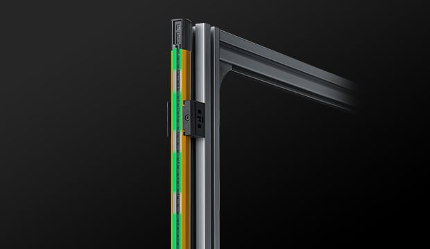 安全光柵GL-V 系列搭載大型線狀指示燈,僅靠本體即可清楚顯示狀態(tài)。當(dāng)入光時(shí)顯示綠色,遮光時(shí)顯示紅色,即使從遠(yuǎn)處也能一眼辨識(shí)光柵是否遮光,有助於迅速?gòu)?fù)原作業(yè)。此外,透過顯示模式還可確認(rèn)受光量降低或錯(cuò)誤狀態(tài),便於及早採(cǎi)取對(duì)策。GL-V 系列可廣泛應(yīng)用於設(shè)備啟動(dòng)、調(diào)整與運(yùn)轉(zhuǎn)階段。雖然尺寸僅為22 mm × 22 mm,卻具備約3 mm 厚的堅(jiān)固外殼結(jié)構(gòu),展現(xiàn)高耐用性。重新設(shè)計(jì)的內(nèi)部光學(xué)構(gòu)造更支援最長(zhǎng)15 公尺的檢測(cè)距離。