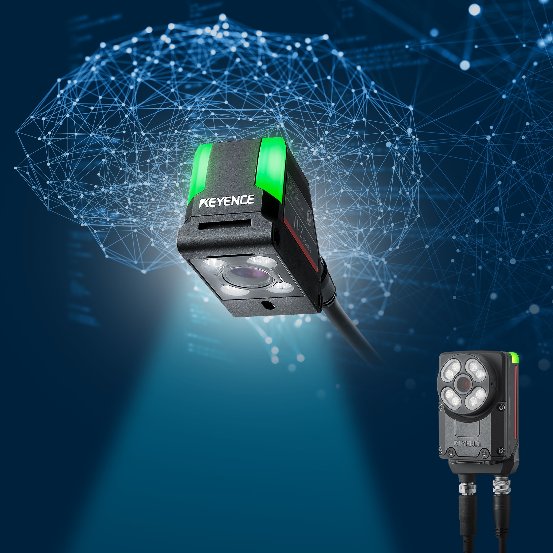 IV3 系列為搭載AI 技術影像辨別感測器新一代產品。不論拍照 (成像取得) 或判別檢測皆由AI 技術輔助,同時強化有無、判別的檢測能力。檢測時,只需框選想要強調的特徵點,由AI 輔助取得成像;檢測時只需登錄OK/NG 影像各一張,即可完成設定。使用者不需具備專業(yè)視覺系統(tǒng)知識,不再需要耗費大量精力與工時即可輕鬆導入運用。內建鏡頭與照明的一體化設計,再也不需要搭配外部照明等外部機器;檢測時也無須擔心環(huán)境光影響。另外,放大器內部搭載高性能CPU;檢測時無須搭配電腦。超小型感測頭機種對應50~3000 mm安裝距離,視野範圍最大達2730 X 2044 mm,可活用於各式生產現(xiàn)場。
