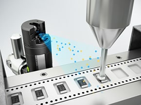 準(zhǔn)備了支援?6 mm軟管的2種管嘴。即便是無法安裝本體的狹窄場(chǎng)所,亦可透過使用軟管,實(shí)現(xiàn)單點(diǎn)的除塵和靜電消除措施。