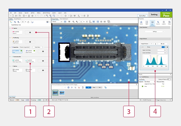 VS 系列能夠在製造現(xiàn)場(chǎng)中從簡(jiǎn)單檢查到高度複雜的檢查,均能在最短時(shí)間內(nèi)解決。業(yè)界首創(chuàng)光學(xué)變焦功能的軟體,只需「輕輕一點(diǎn)」即可達(dá)到最佳成像效果。系統(tǒng)內(nèi)建豐富的檢查工具,並能利用AI和邏輯資料庫(kù),再加上快速設(shè)定檢查程式的軟體,實(shí)現(xiàn)在最短時(shí)間內(nèi)構(gòu)建出最佳的視覺(jué)系統(tǒng)。